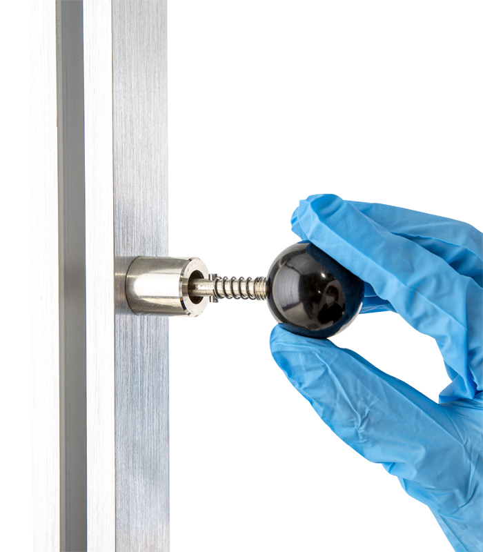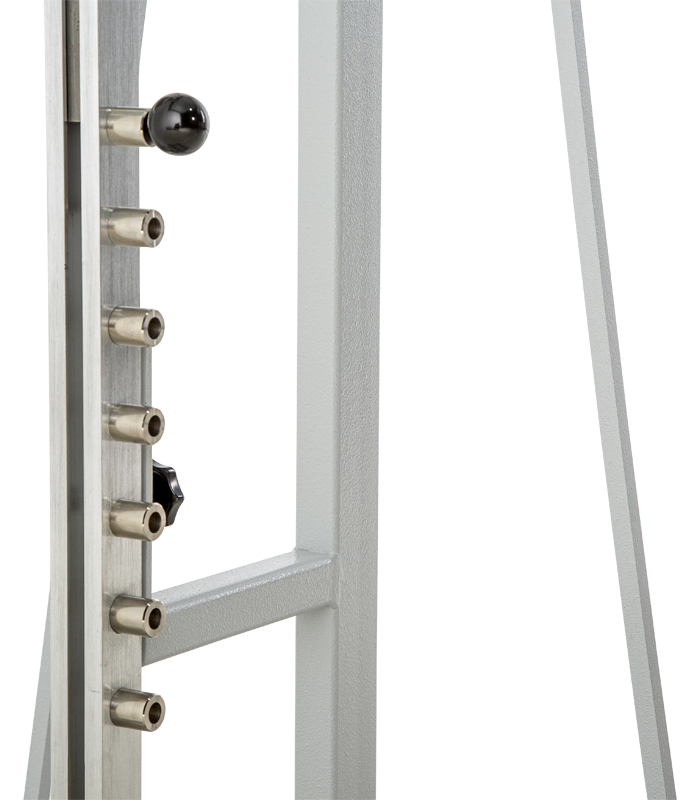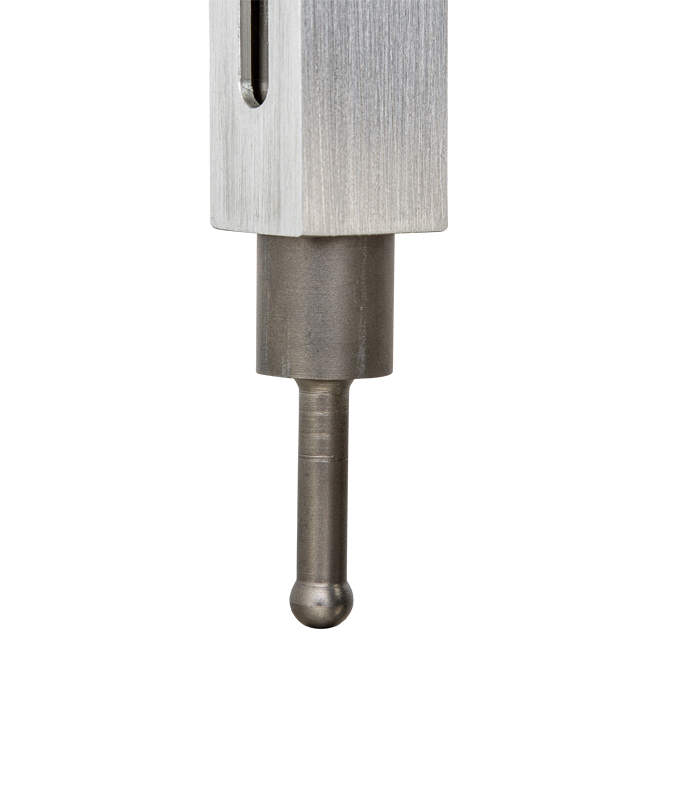 Fallgestell mit Führungsschiene und Arretierstifte, Auslösevorrichtung mit geschlitztem höhenverstellbarem Rohr, skaliert. Fallkörper 500 +- 5 g, gehärtet, Ballastring aus Stahl ø 100 mm, 2000 g, Aluminium-Trägerplatte 300 x 300 x 3 mm als Auflager (Verfahren A).