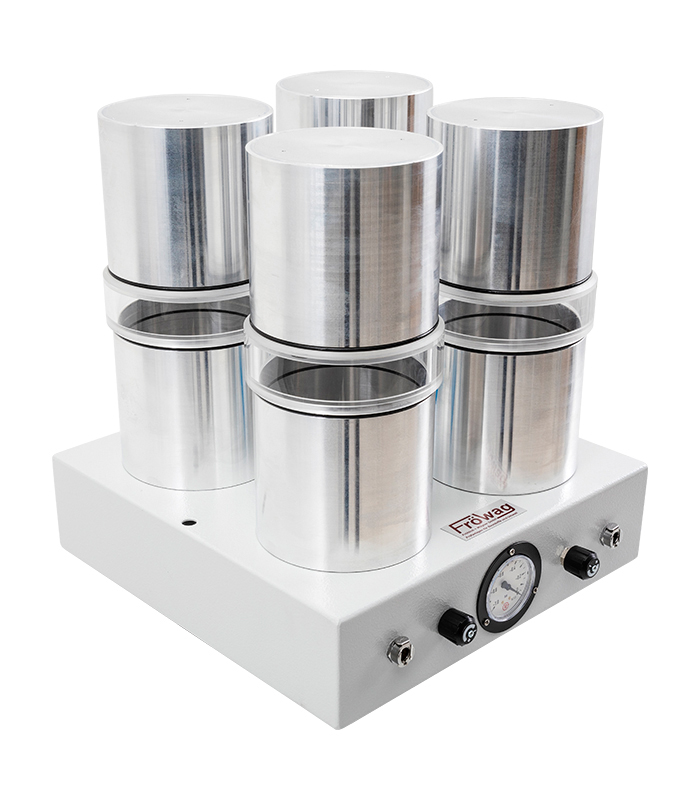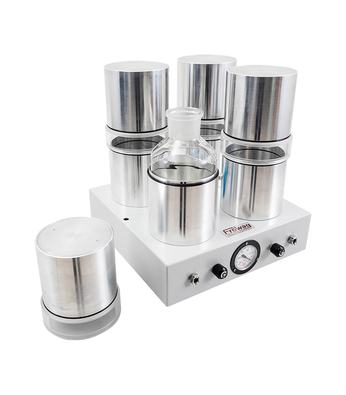 Vakuumvorrichtung zur Entlüftung von Pyknometerproben, geeignet für 500, 1000 oder 2000 ml Flaschen oder Marshallkörper ø 100 mm.